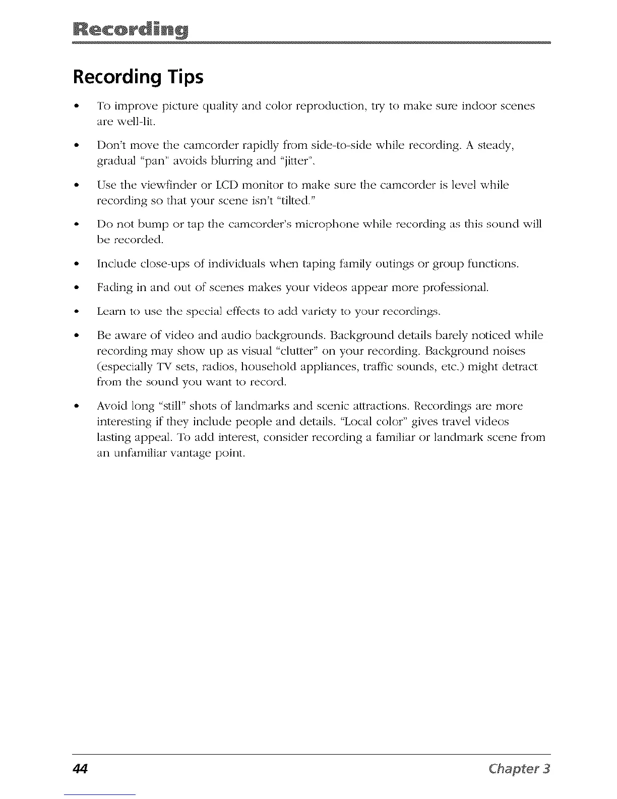 Dont m_ve the camcorder rapidly from side io side while recording. A steady,