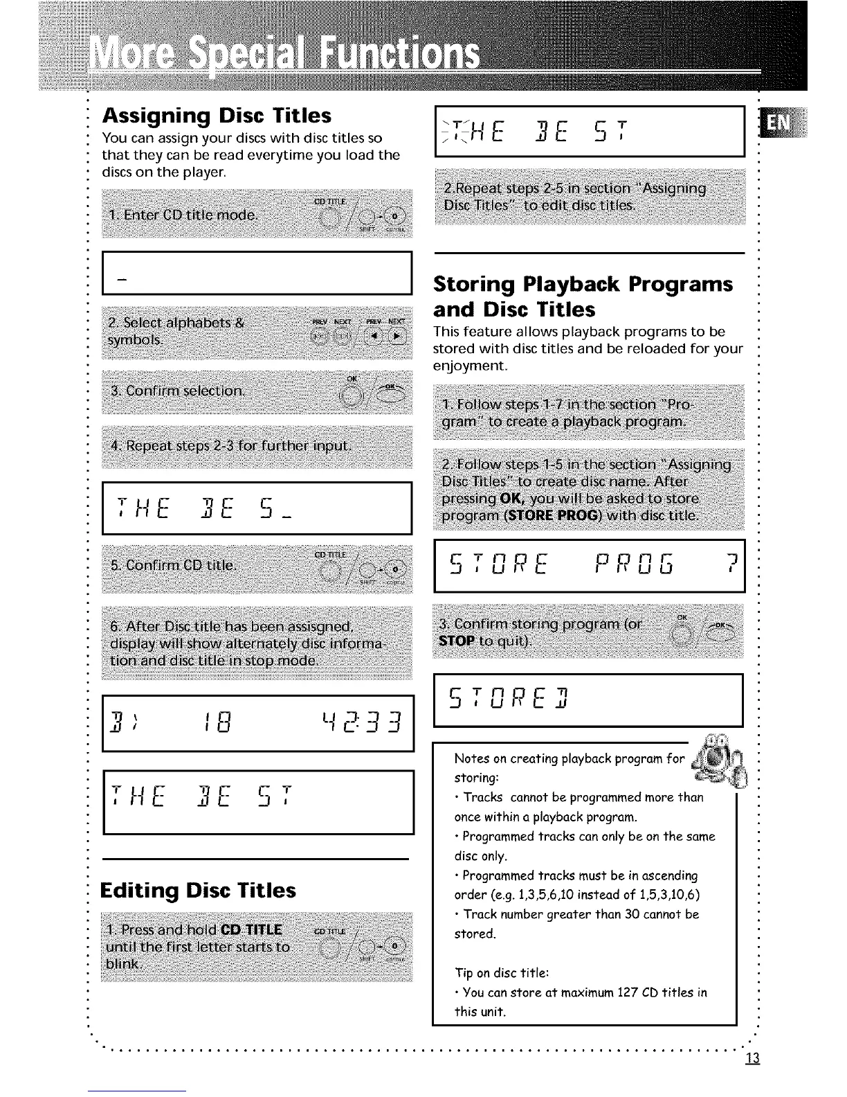 • You can store at maximum 127 CD titles in