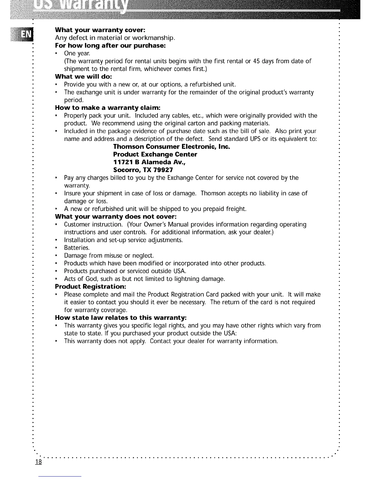 • Please complete and mail the Product Registration Card packed with your unit. It will make