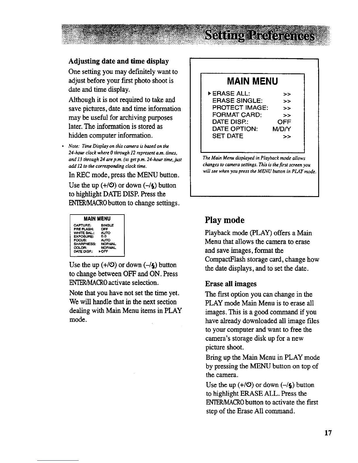 PLAY mode Main Menu is to erase all