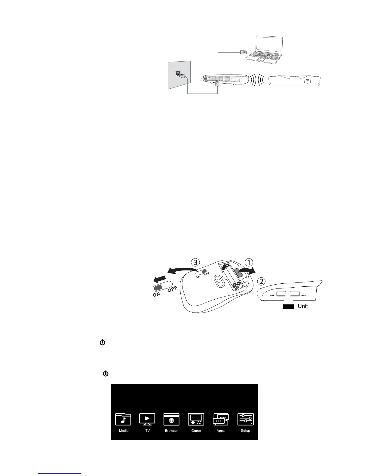 •Shortpressthe button the unit to turn it on Standby Mode, then the RED indicator lights up.