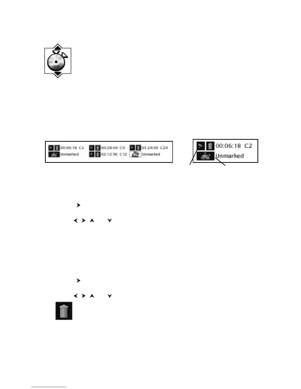 3. Use the , , and buttons on the remote to highlight the trashcan icon that’s next