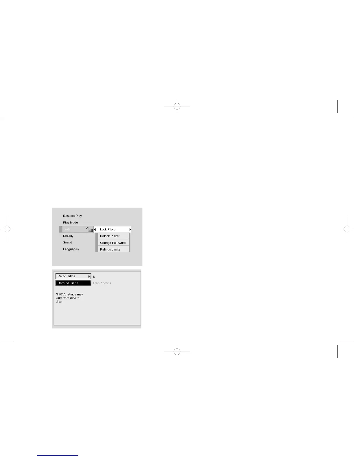 Note: In order for the Ratings to be enforced, the DVD Player must be locked and the disc you’re playing must contain a movie (or a title) that is