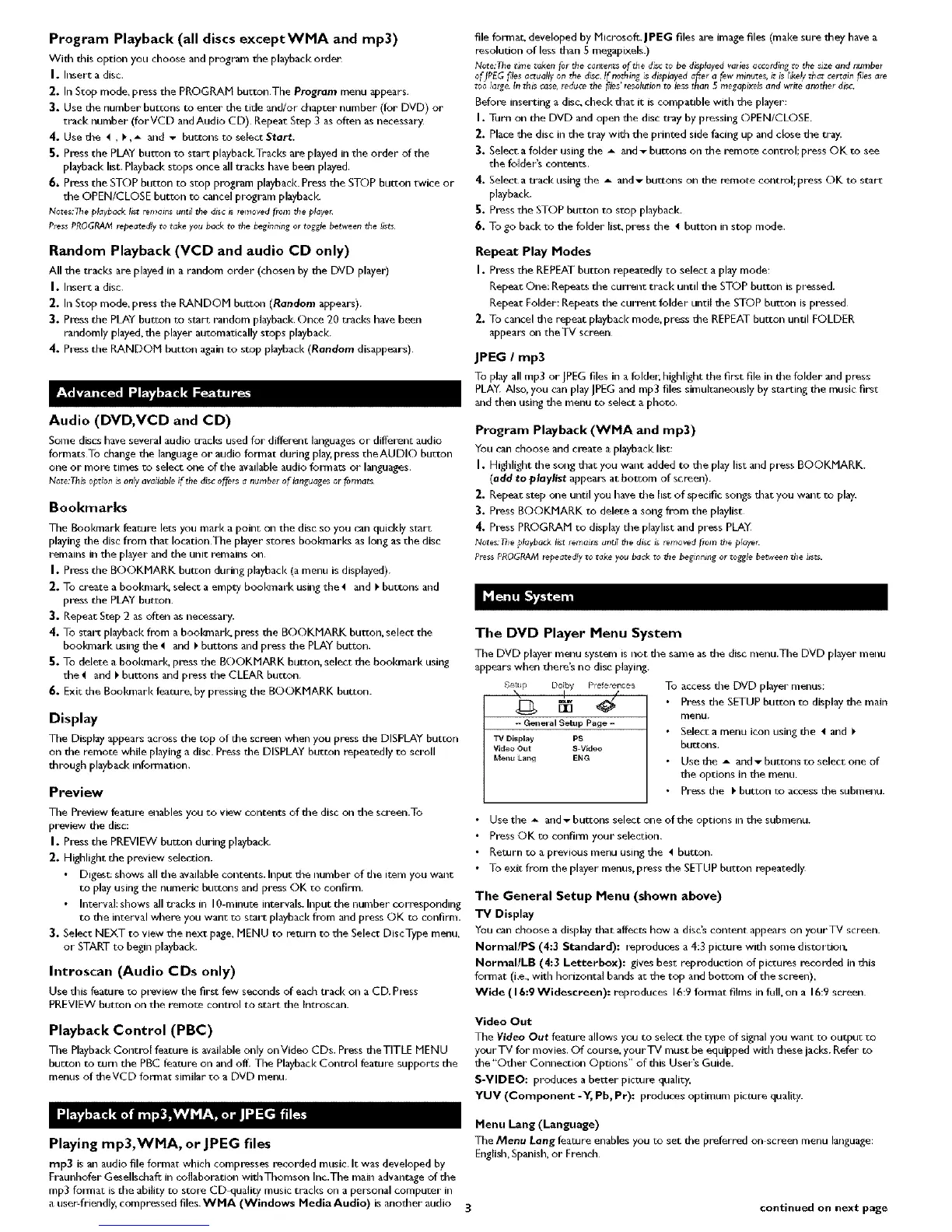• To exit from the player menus, p ress the SETUP button repeatedly