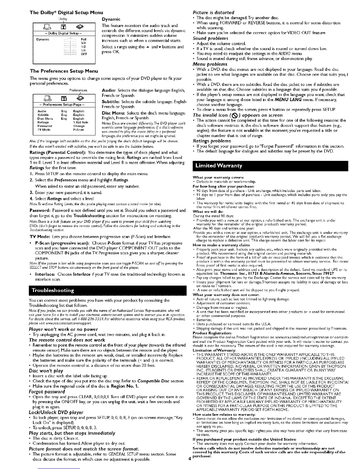 REMEDY OFTHE CONSUMER. THOMSON INC. SHALL NOT BE LIABLE FOR INCIDENTAL