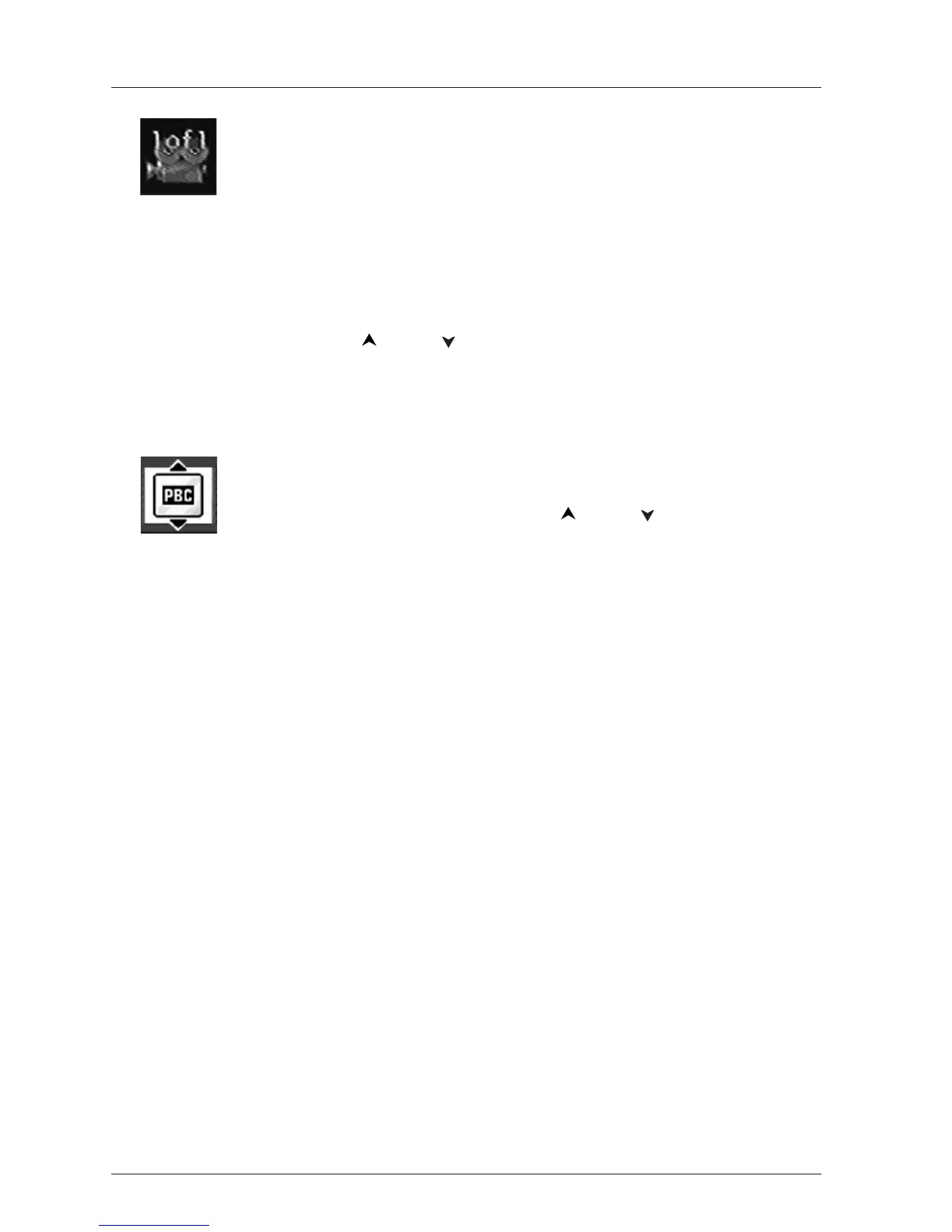 disc. Highlight the PBC icon, and use the and/or buttons to scroll