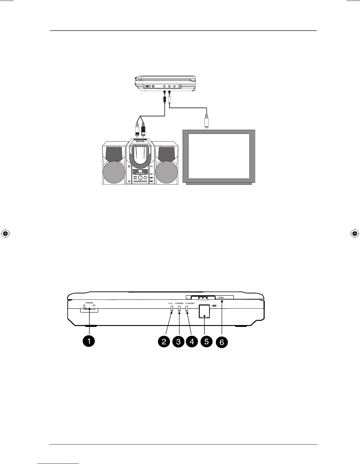 4 STANDBY indicator: Flashes when the DVD player is turned off; the DVD player is still