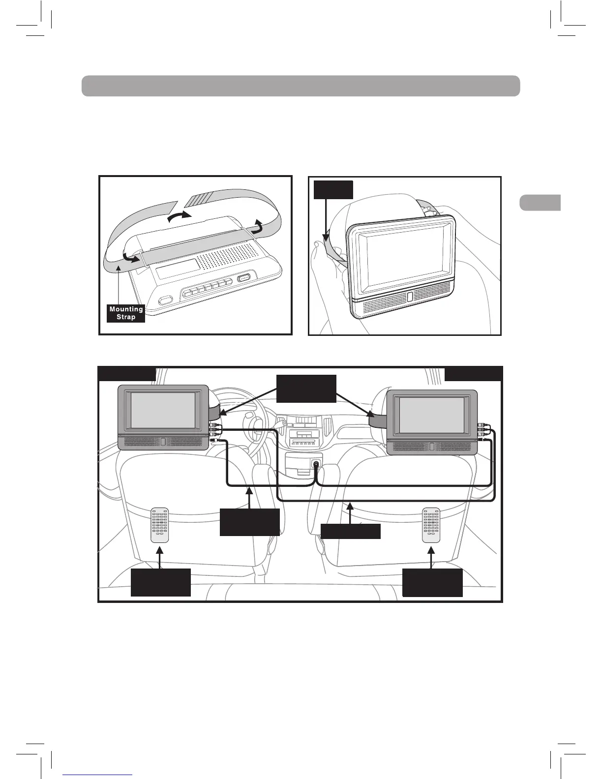 Utilisez les sangles de pose fournies pour poser les appareils à l'arrière des appui-tête. Resserrez bien