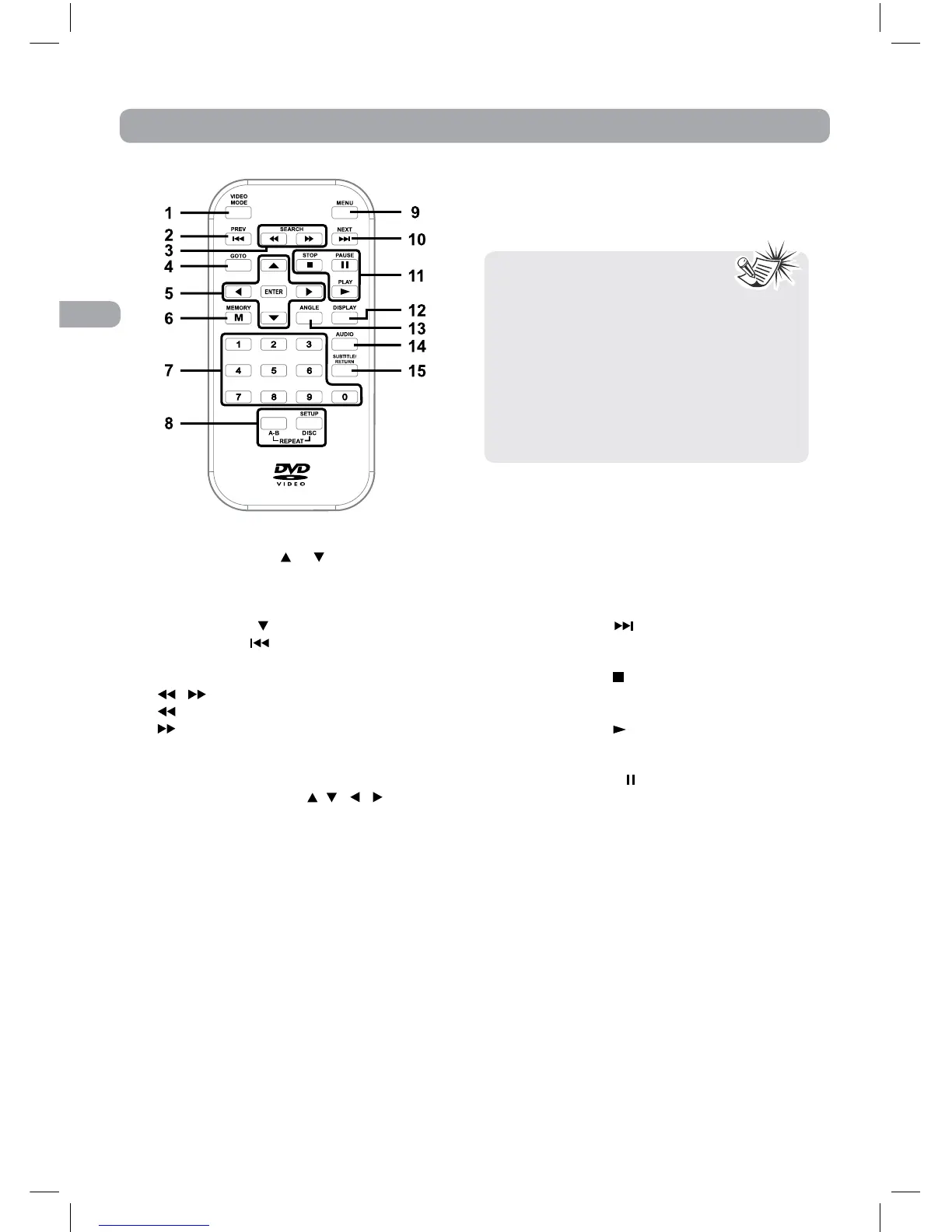 Presione para entrar y salir del menú DVD