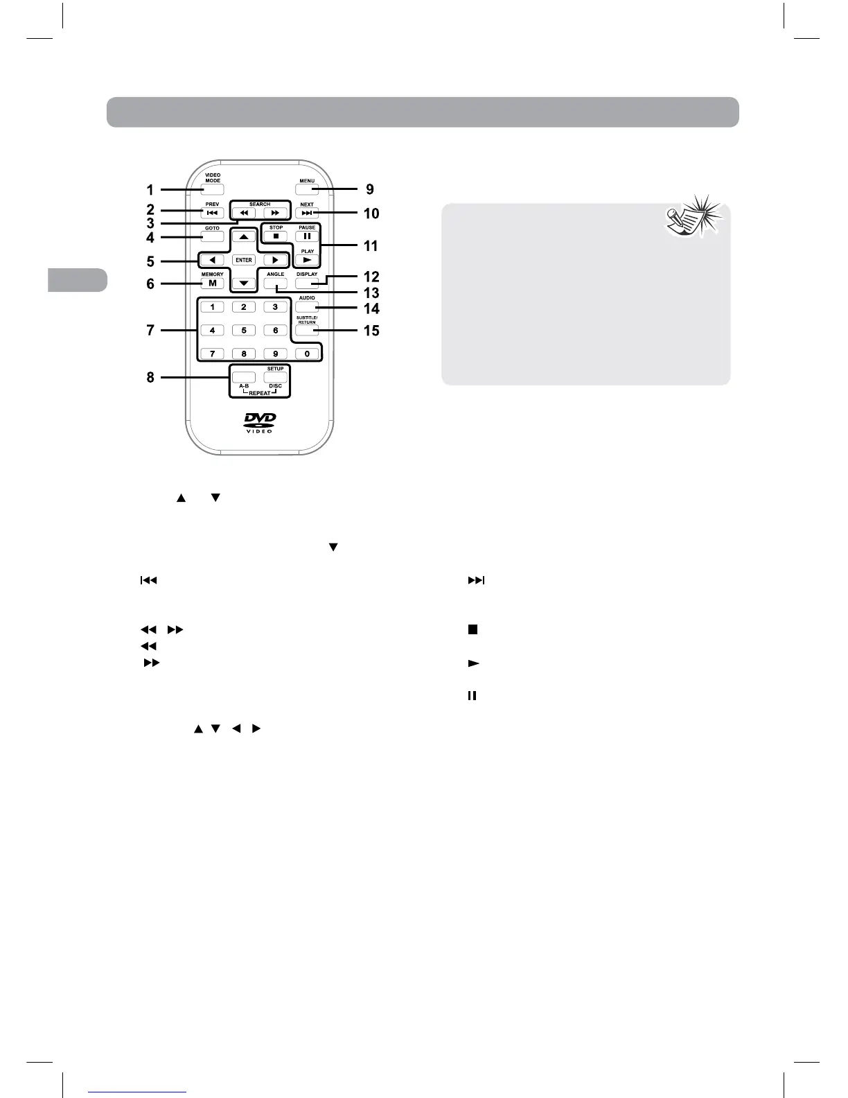 Press to repeat a DVD chapter or title.