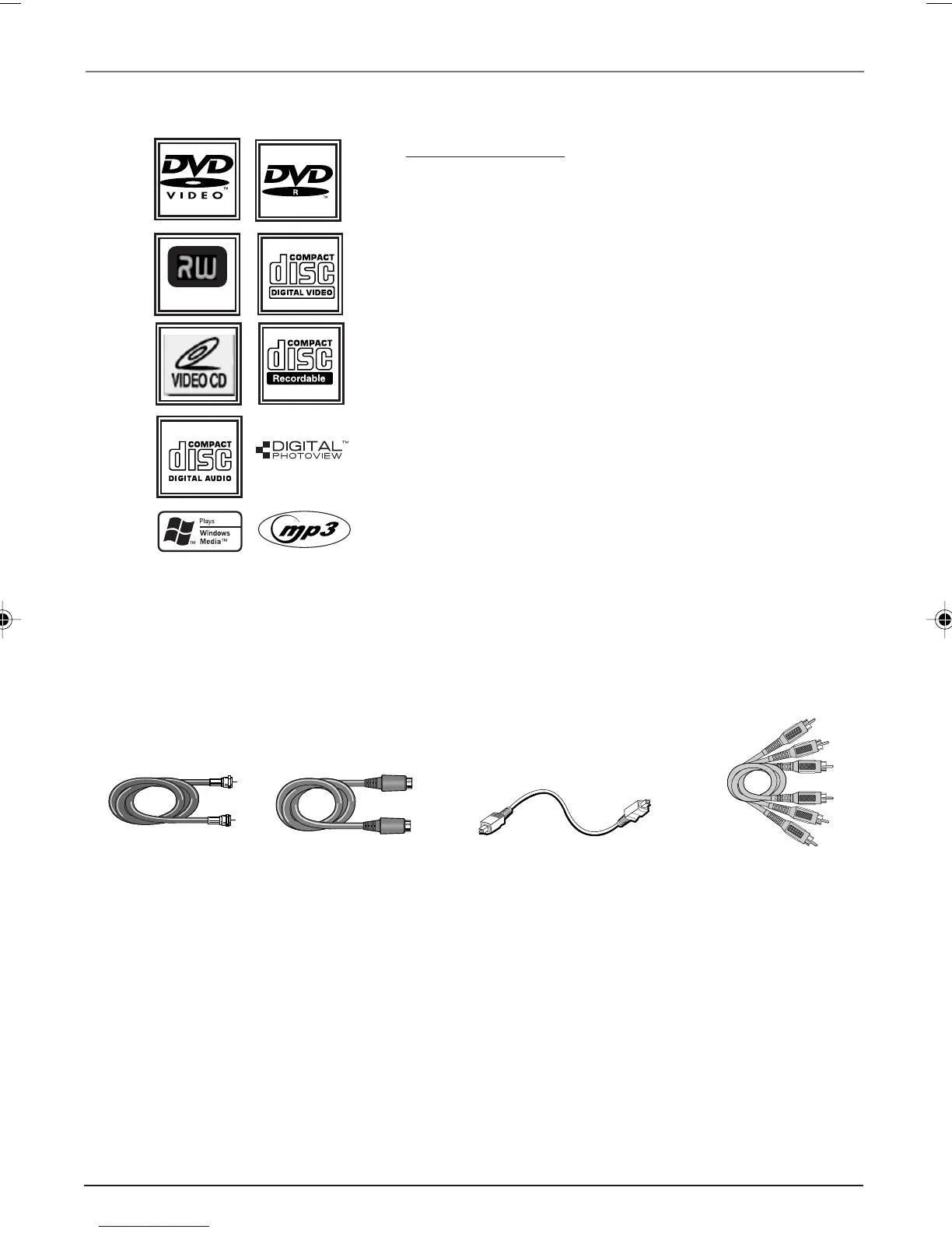 This DVD player is capable of playing the following types of