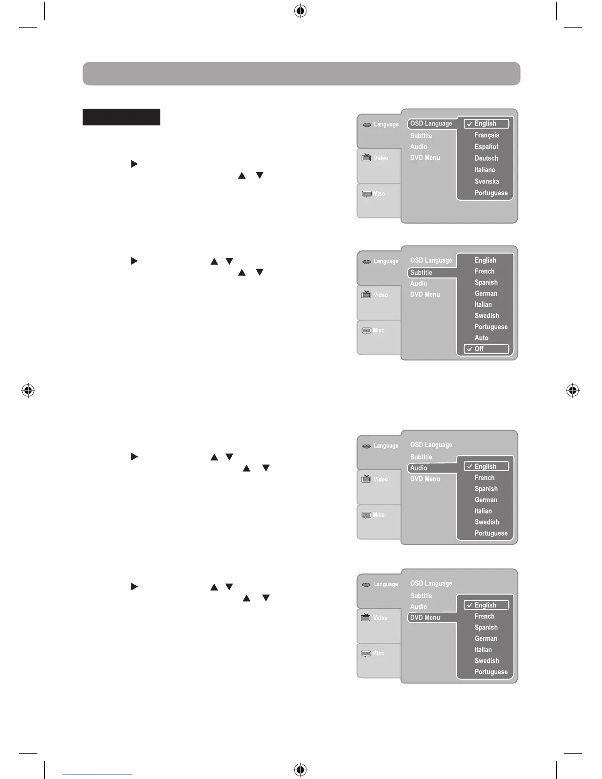 • Some DVDs may not include your pre-selected language. In
