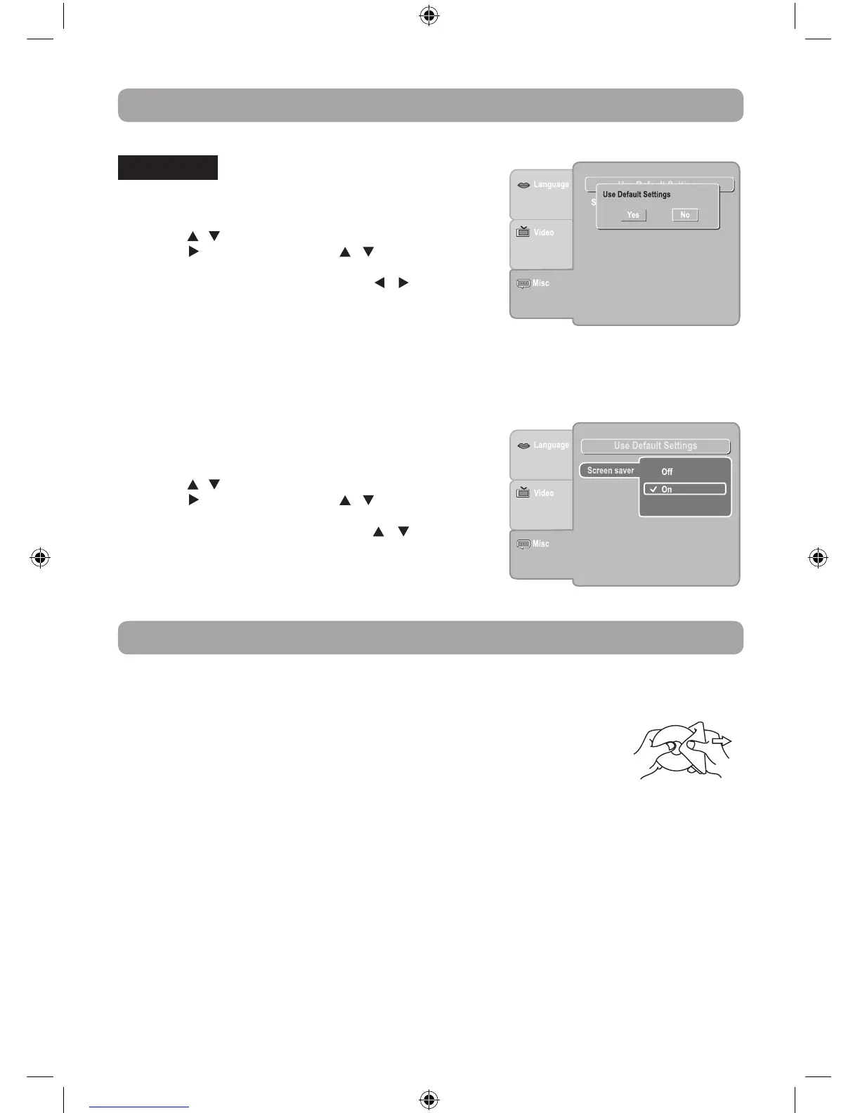 • Cleanthediscbeforeplayback.Wipethediscfromthecenteroutwardwithacleaning