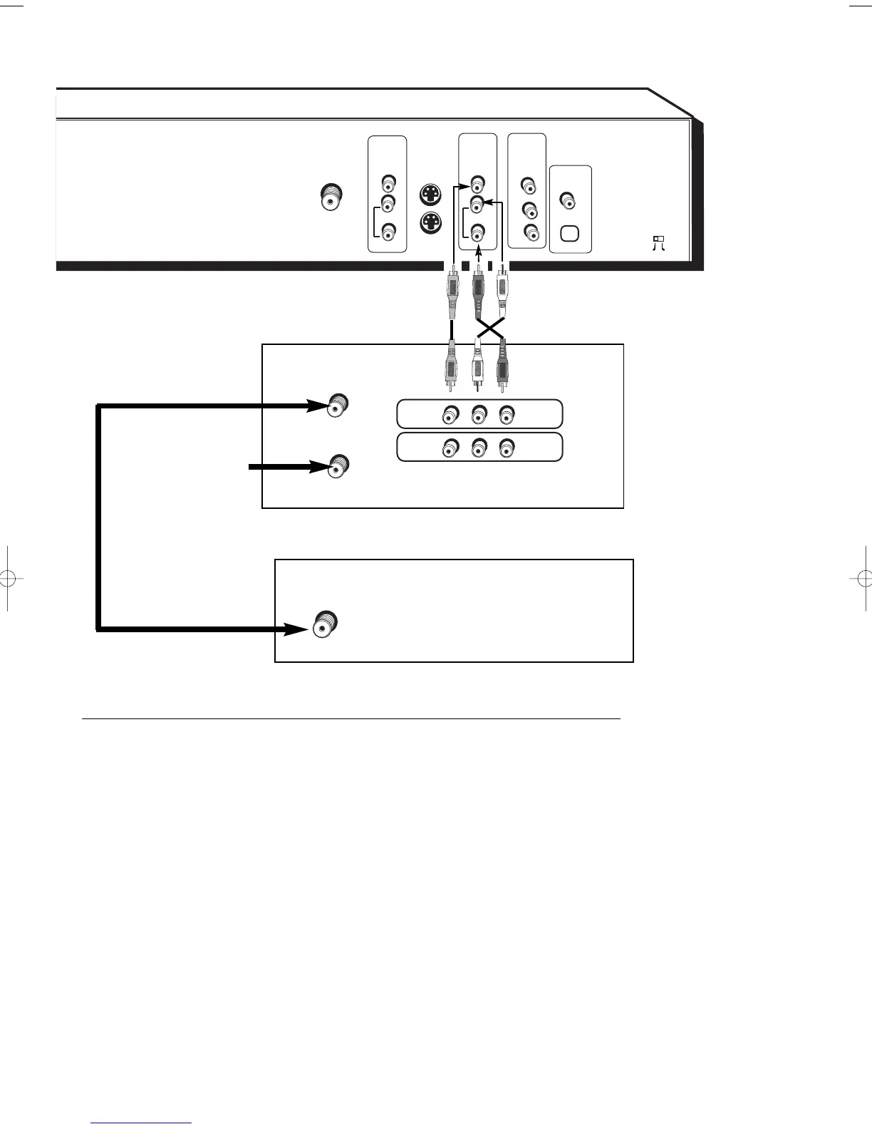 1. Connect the DVD Recorder to the VCR. Connect a set of audio/video cables to the DVD Recorder’s OUTPUT VIDEO (yellow),AUDIO L