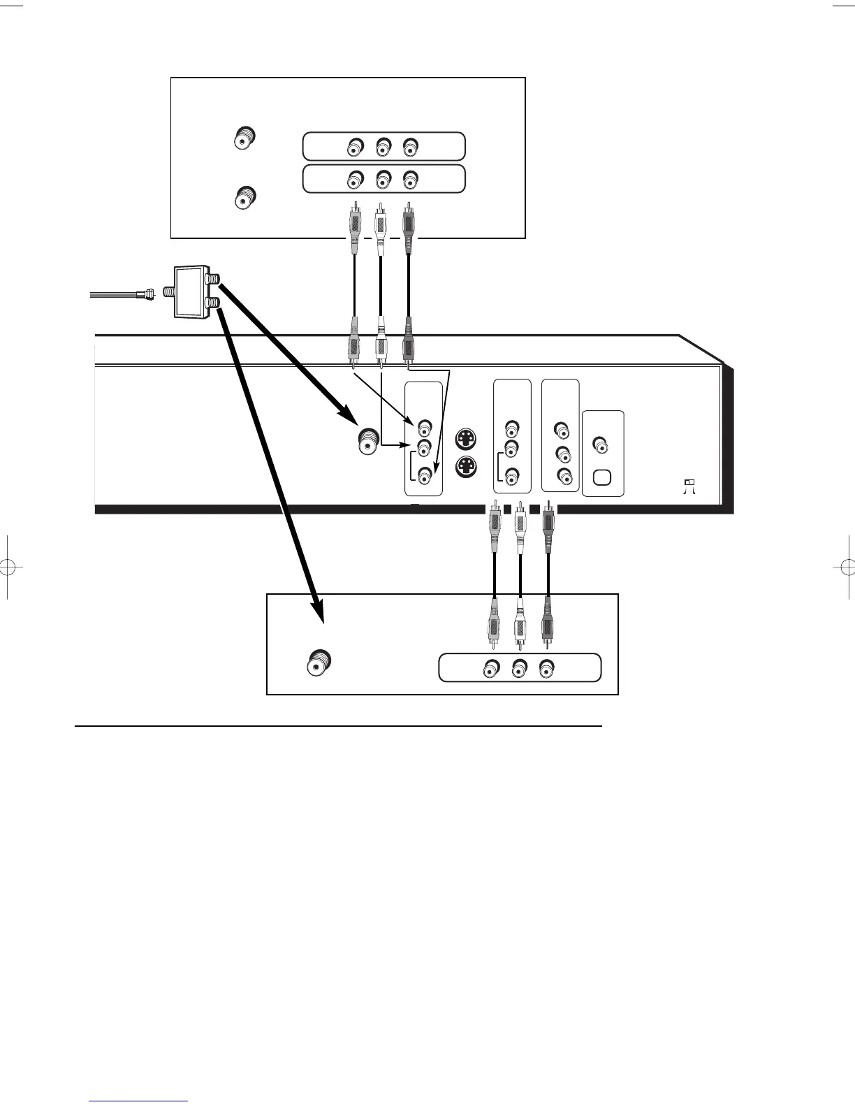 and VCR probably don’t exactly match the ones shown here. In general, you just need to connect the VCR’s Output Jacks to the DVD Recorder’s