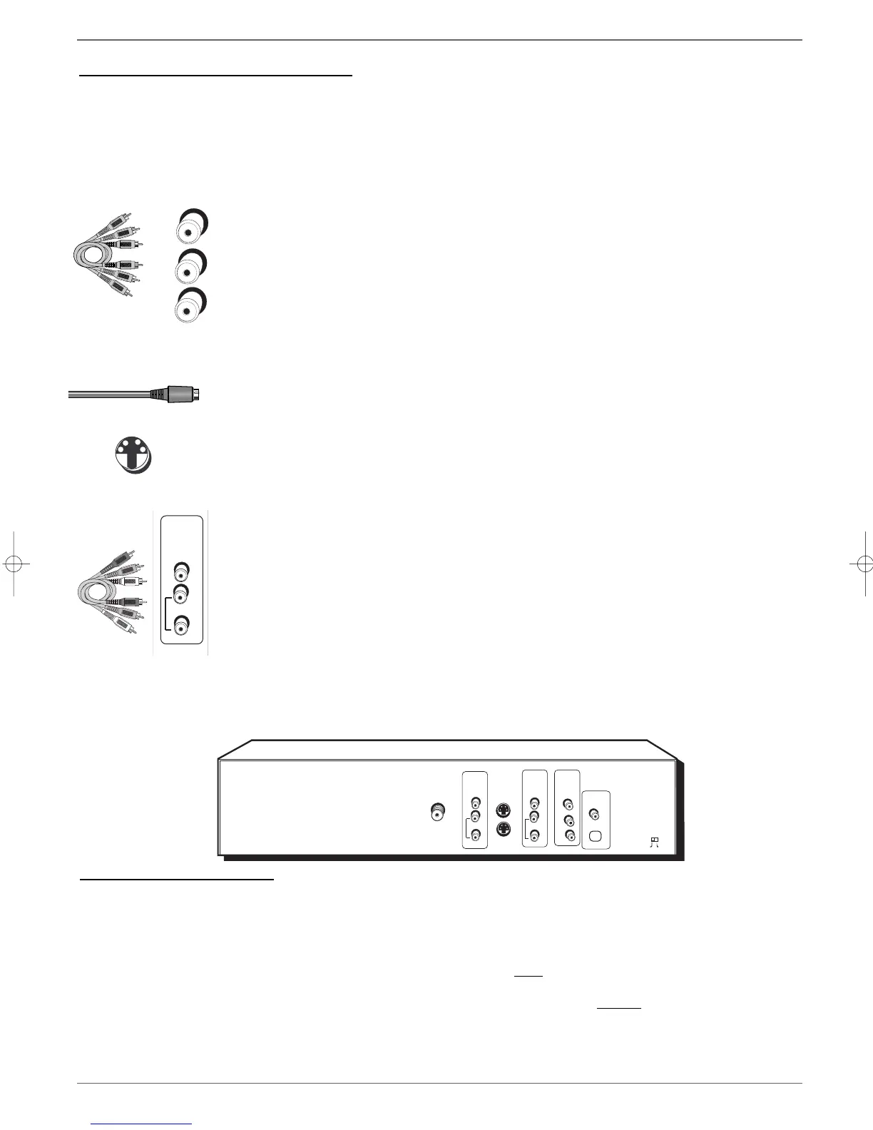 This section describes the jacks and cables you can use to make connections (only S-Video and Audio/Video cables are packed with your DVD Recorder —