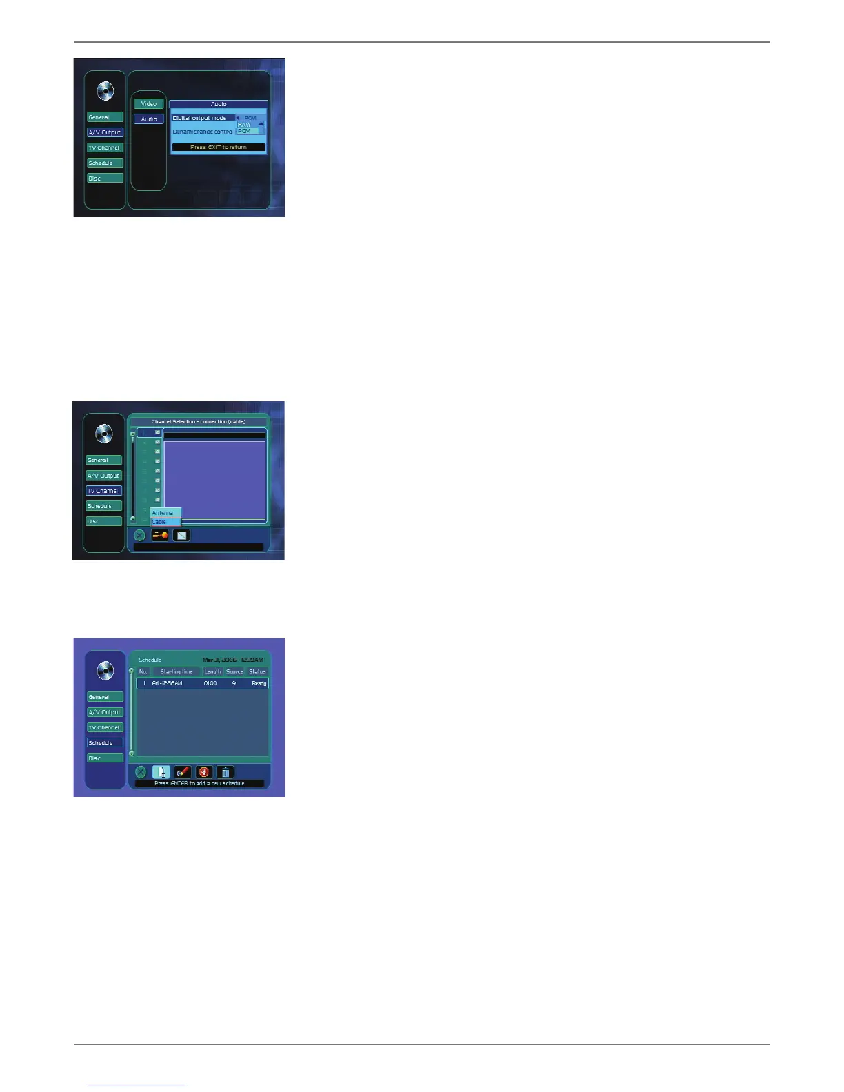 Schedule Menu (Timer Recording)