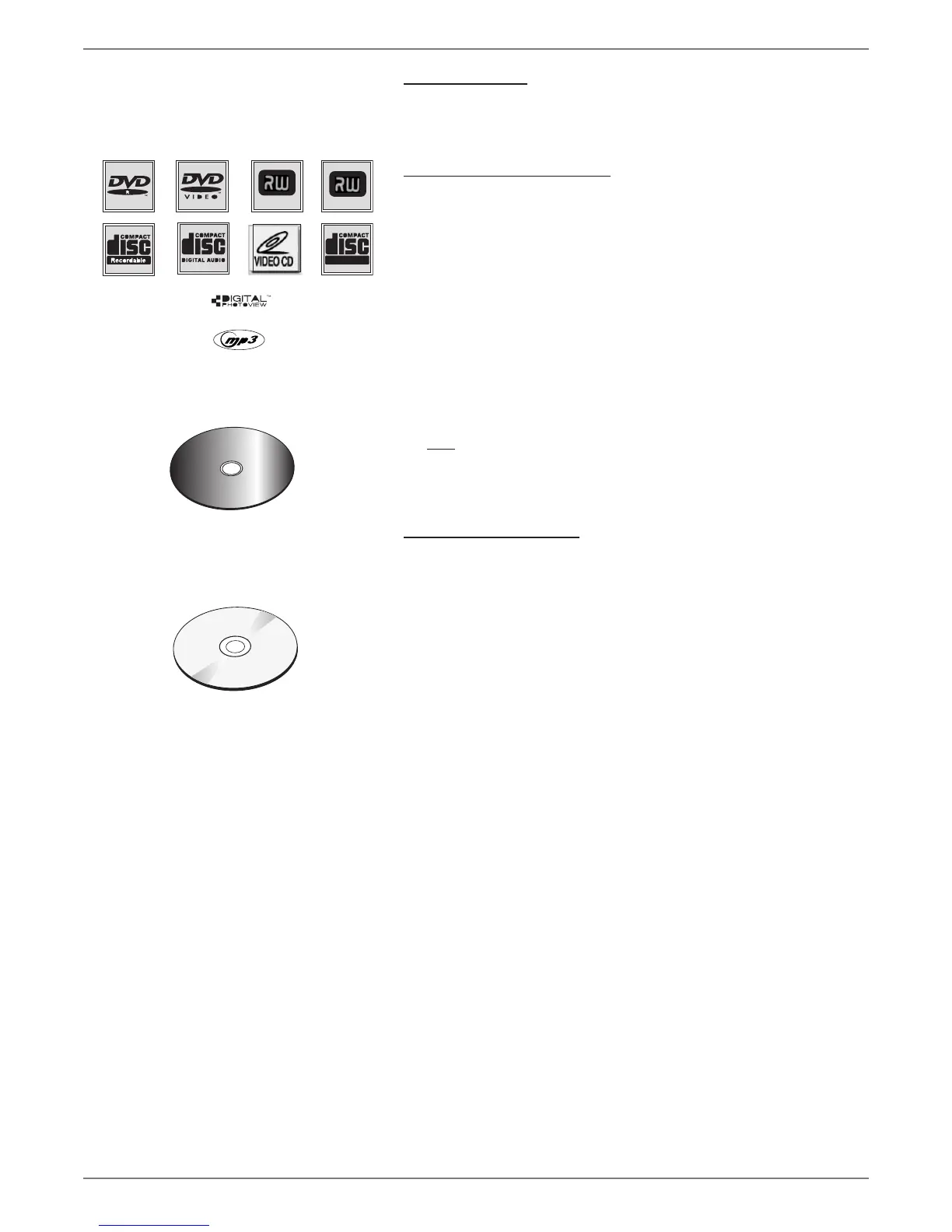 • DVD+R and DVD+RW discs – used to record programming. Instructions about playing and