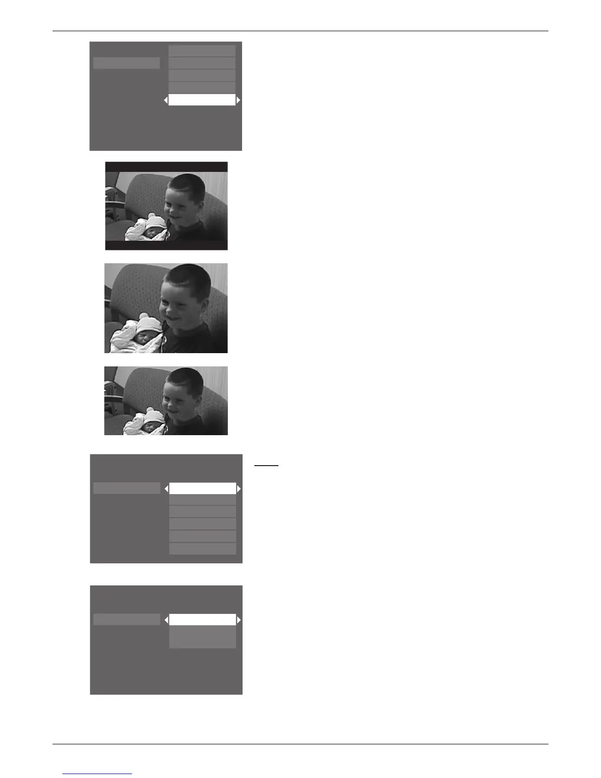may want to adjust the screen setting (also called the aspect ratio). The choices follow: