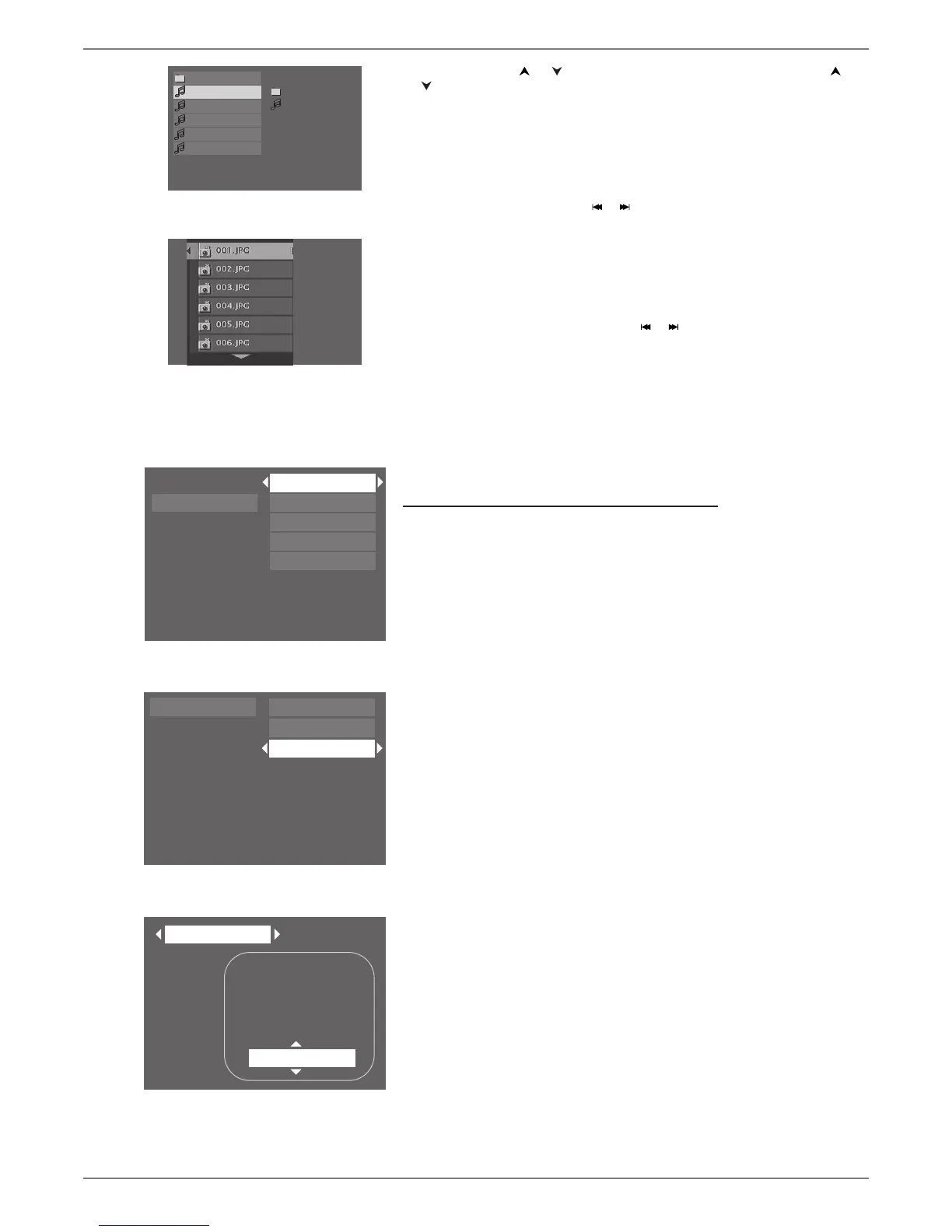 • JPEG fi le: the player starts the slide show with the JPEG fi le you have selected and proceeds