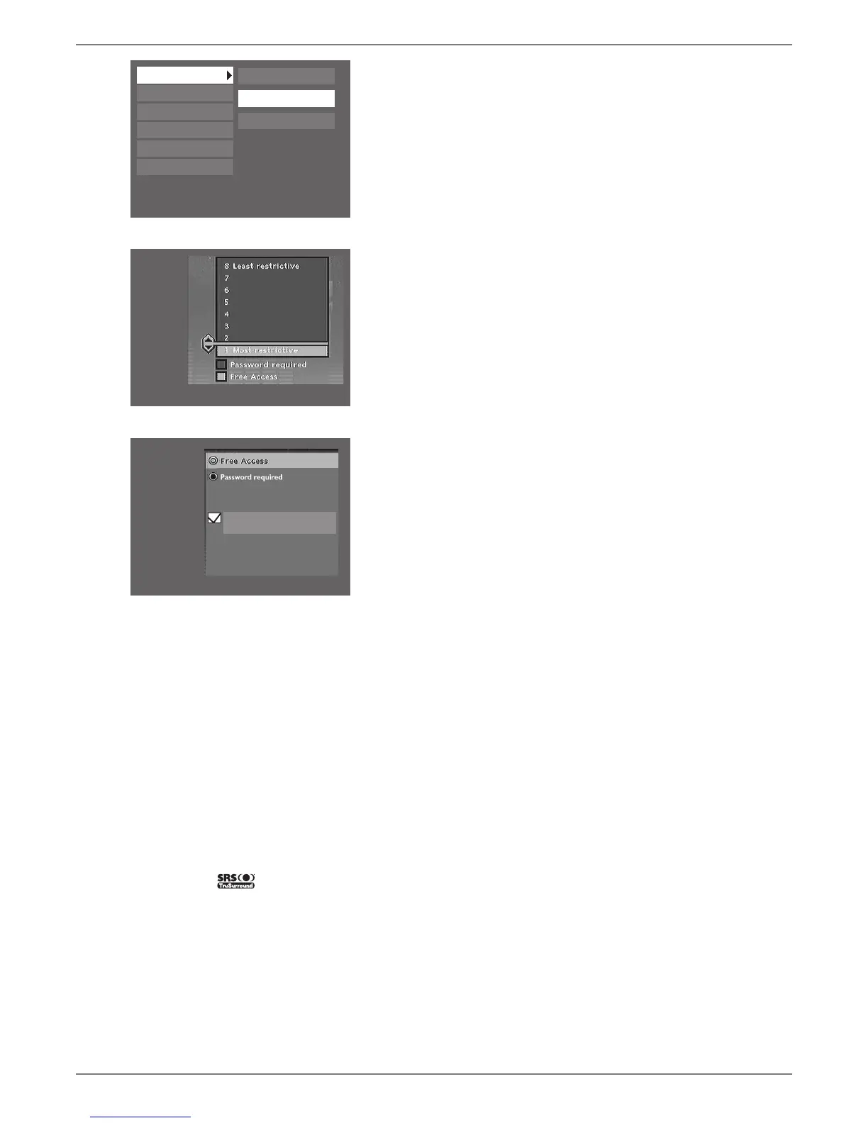 feature highlight SRS/TruSurround, and press OK. Highlight On and press the OK button.