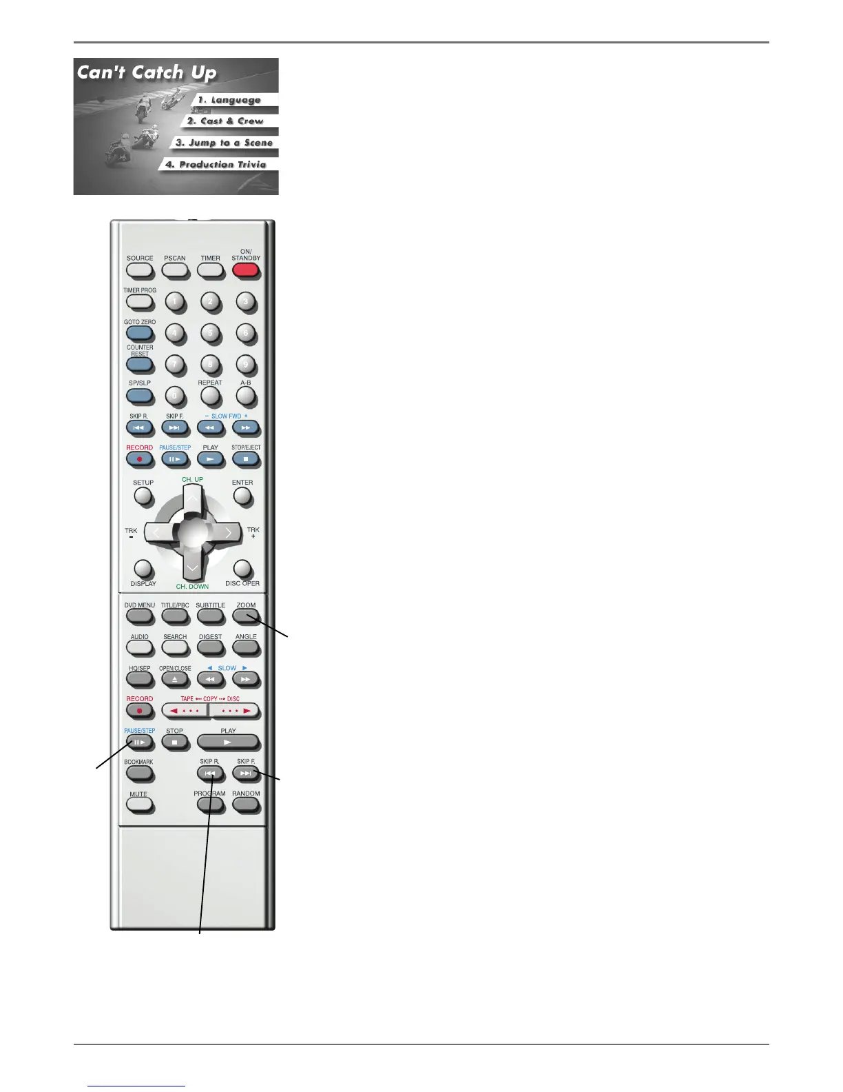 Note: Many DVD titles are programmed to prohibit skipping of warnings or