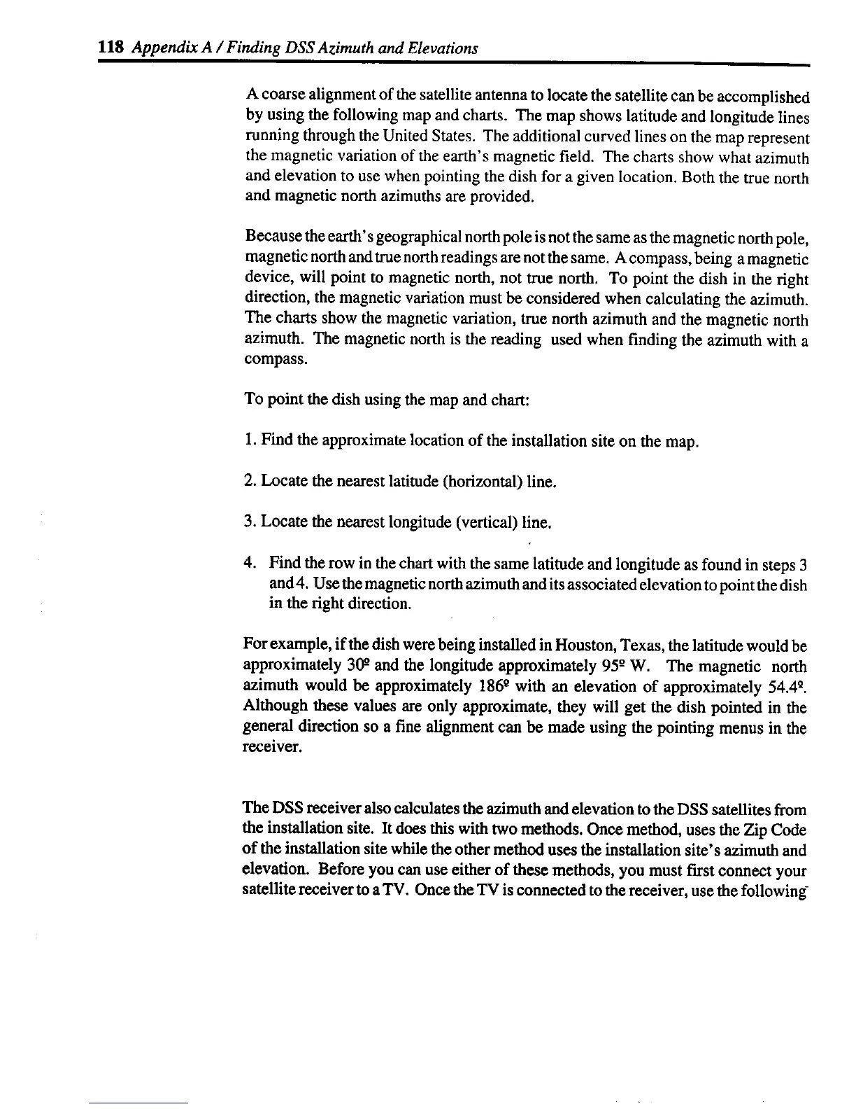 and 4. Use the magnetic north azimuth and its associated elevation to point the dish