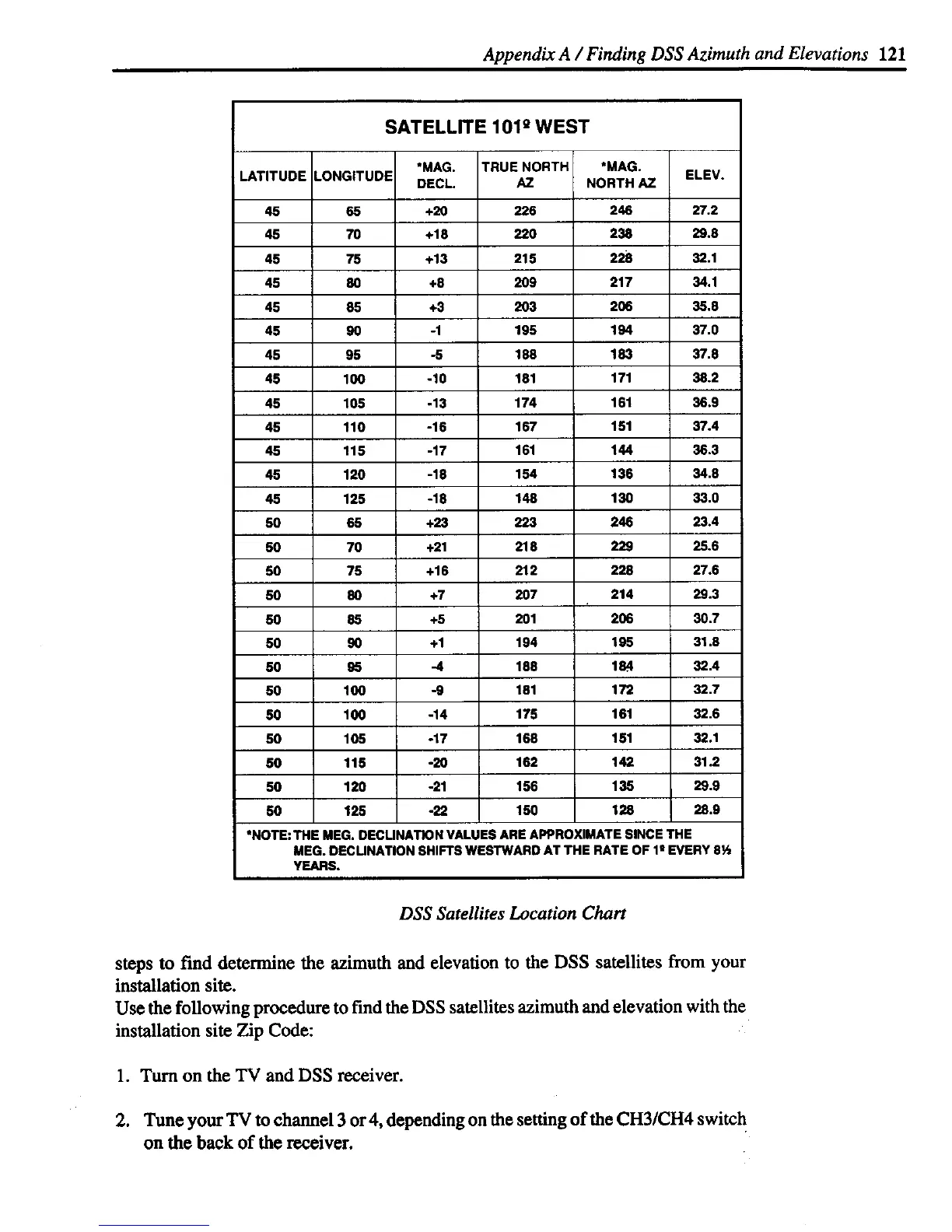 steps to find determine the azimuth and elevation to the DSS satellites from your