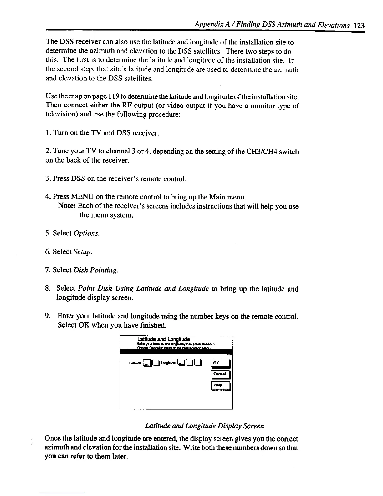 The DSS receiver can also use the latitude and longitude of the installation site to