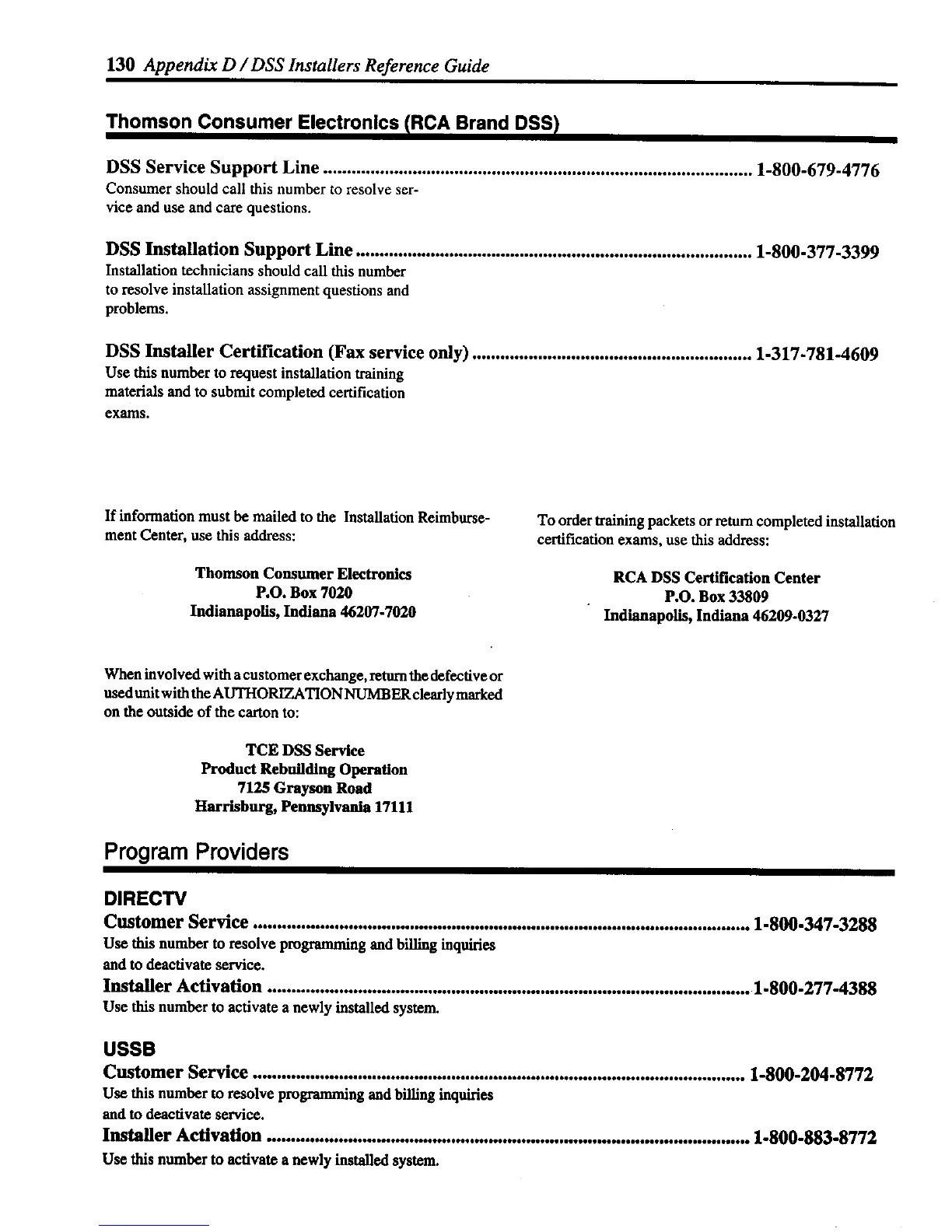 DSS Installer Certification (Fax service only) ........................................................... 1-317-781-4609