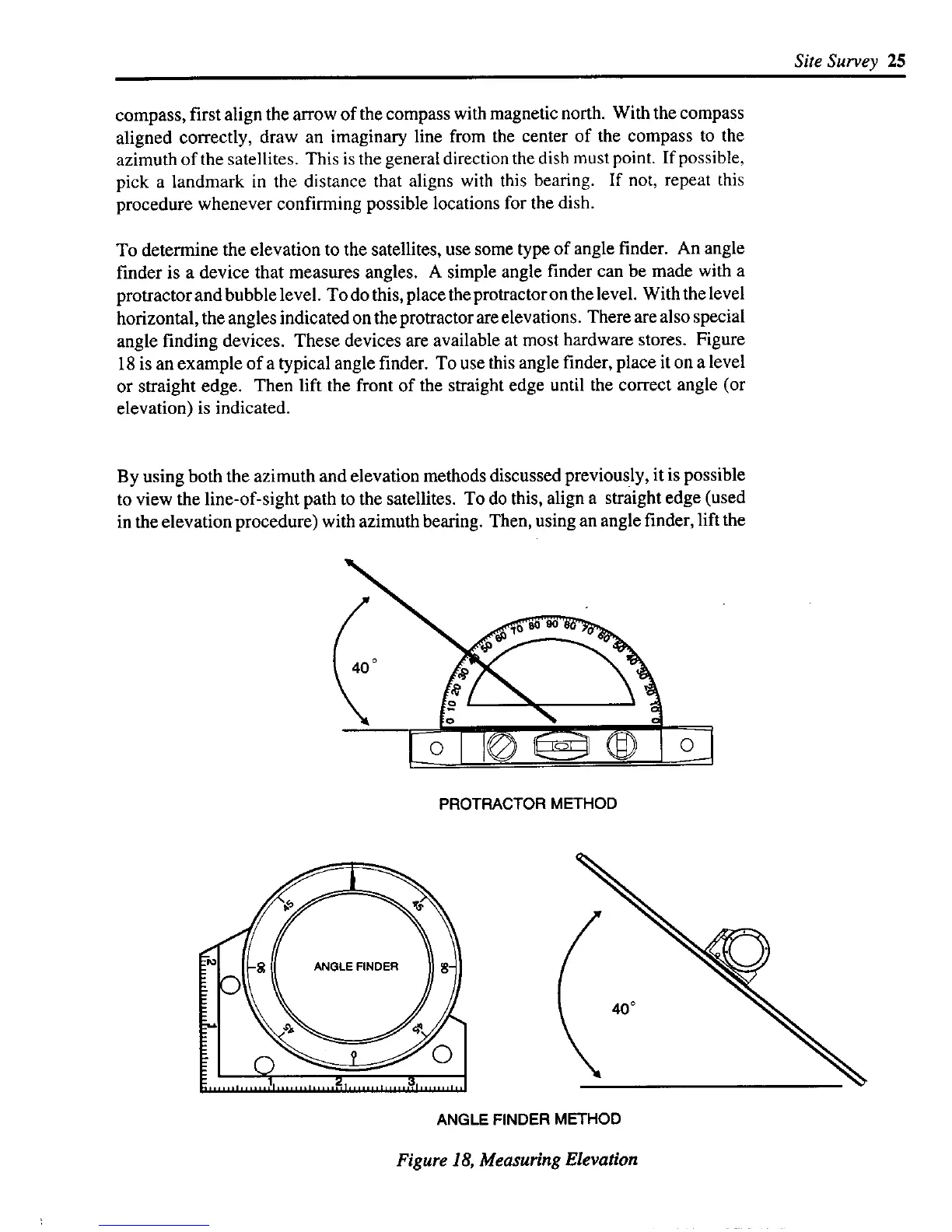 To determine the elevation to the satellites, use some type of angle finder. An angle