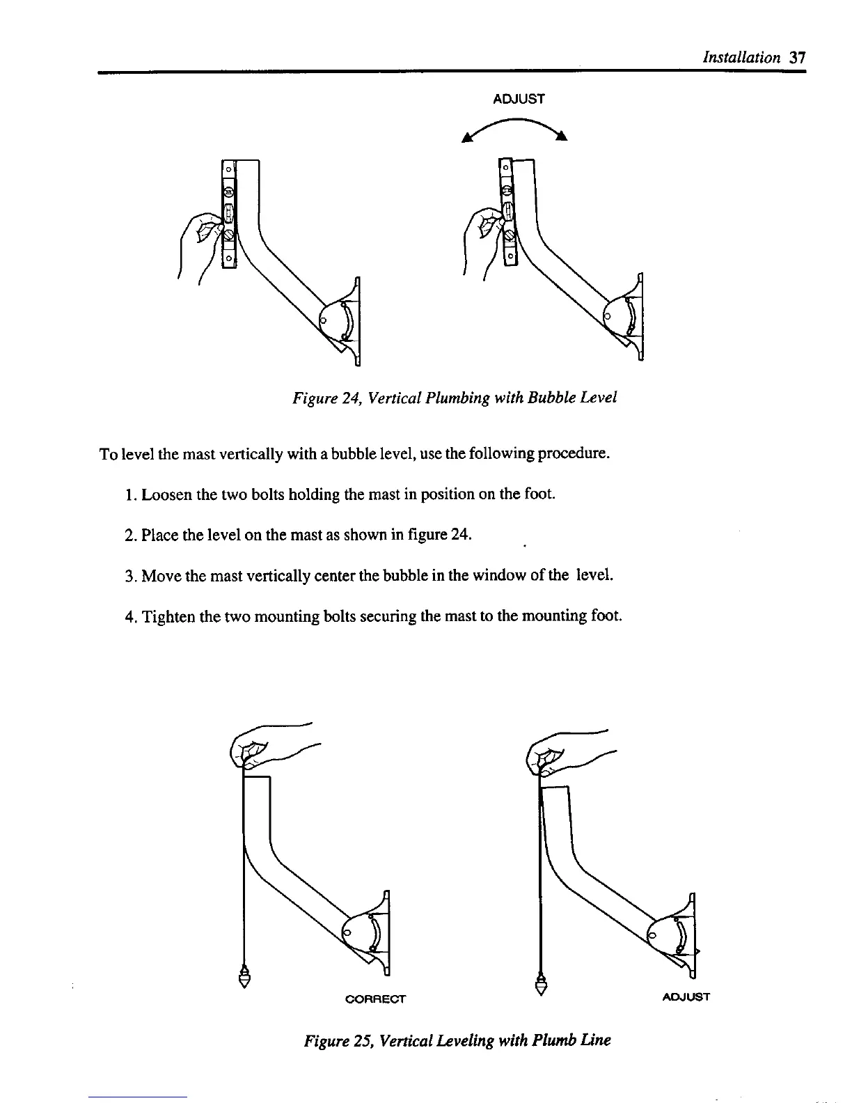 2. Place the level on the mast as shown in figure 24.