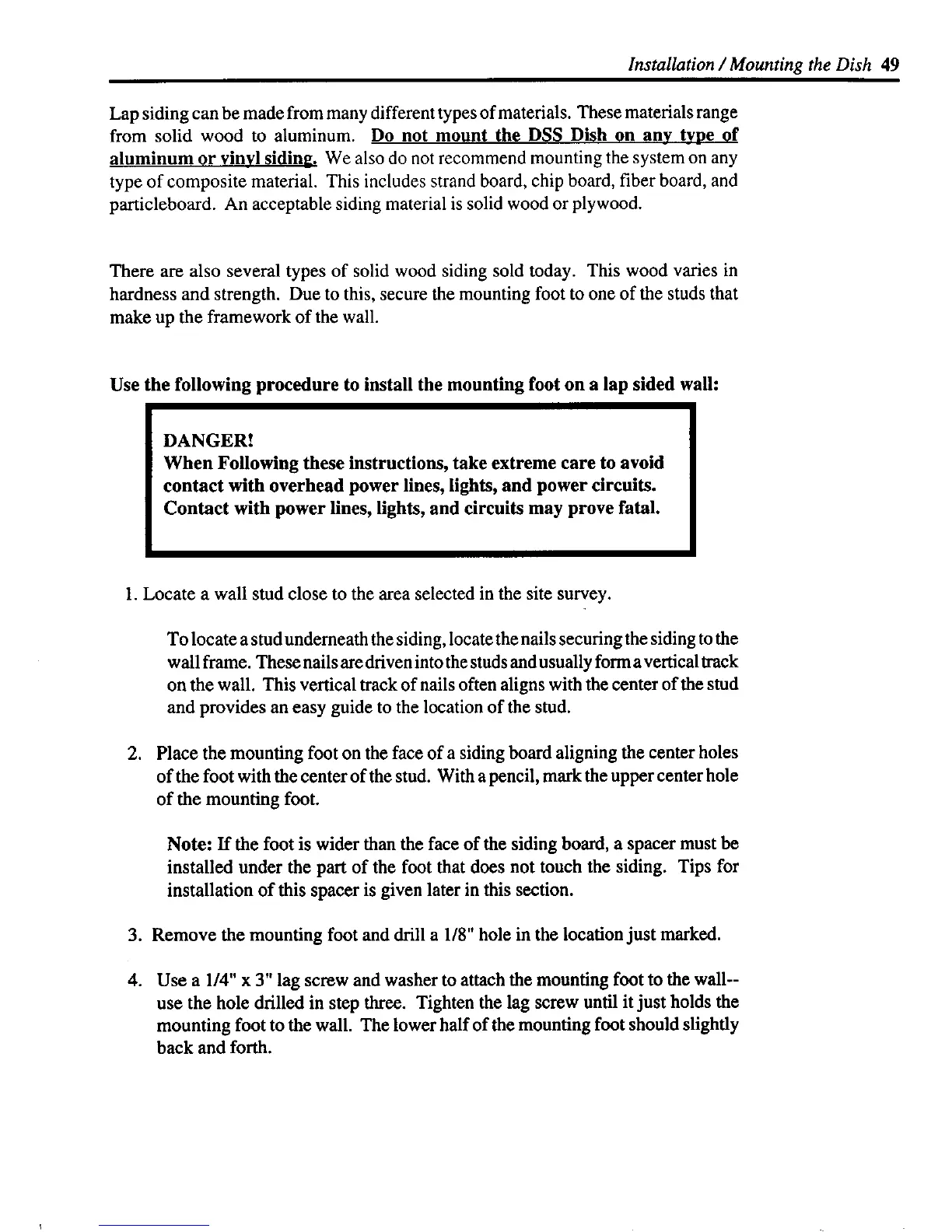 from solid wood to aluminum. Do not mount the DSS Dish on any type of