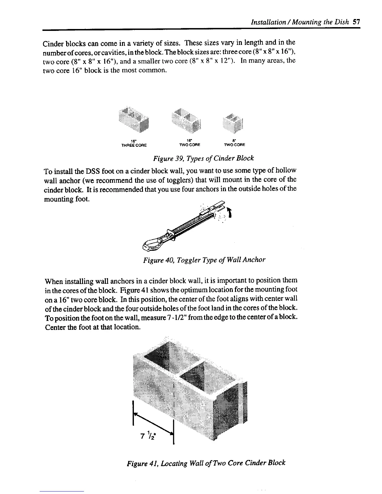 To install the DSS foot on a cinder block wall, you want to use some type of hollow