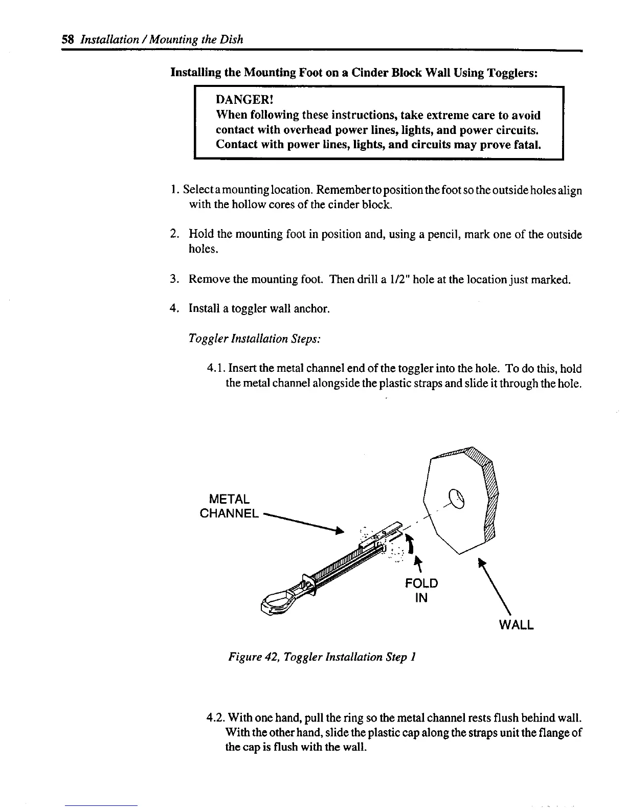 Installing the Mounting Foot on a Cinder Block Wall Using Togglers: