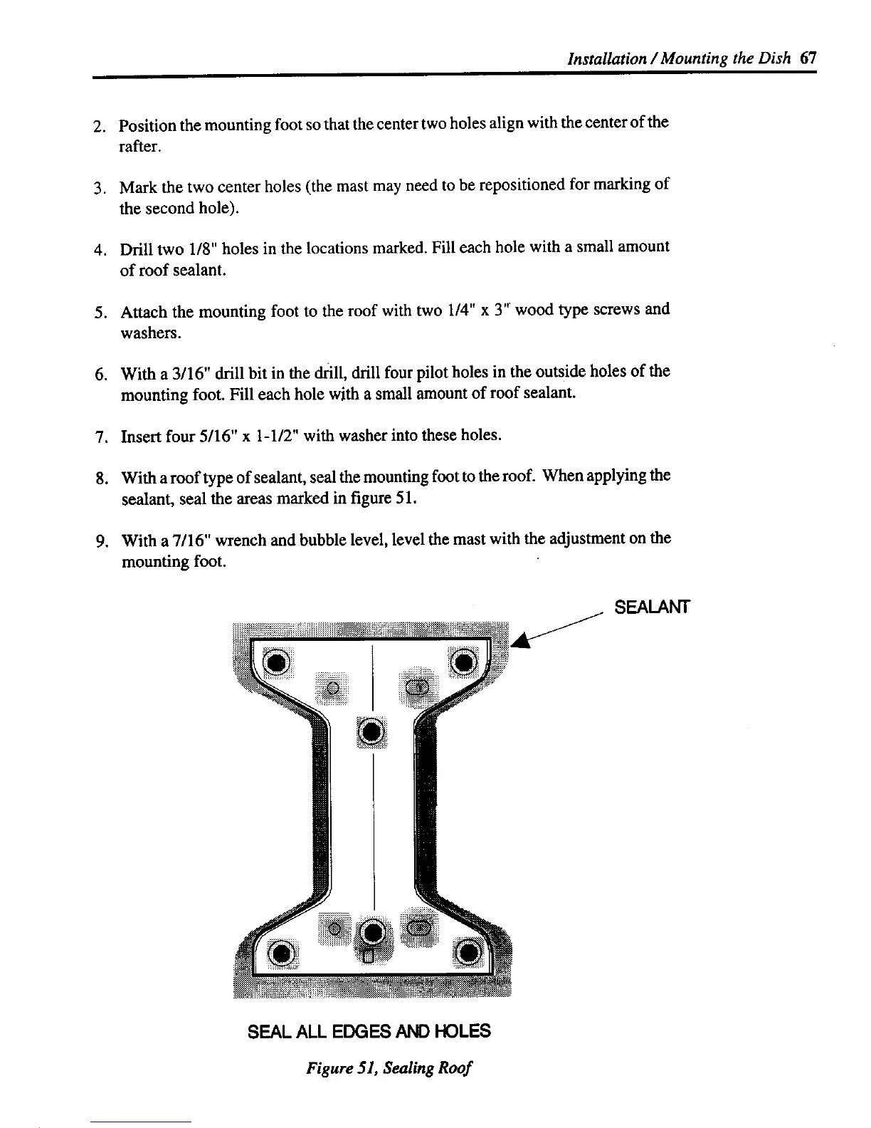 mounting foot. Fill each hole with a small amount of roof sealant.