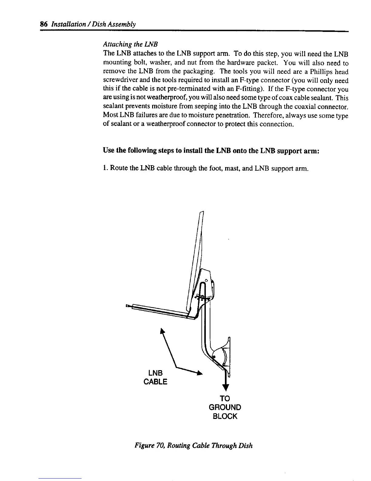 Figure 70, Routing Cable Through Dish