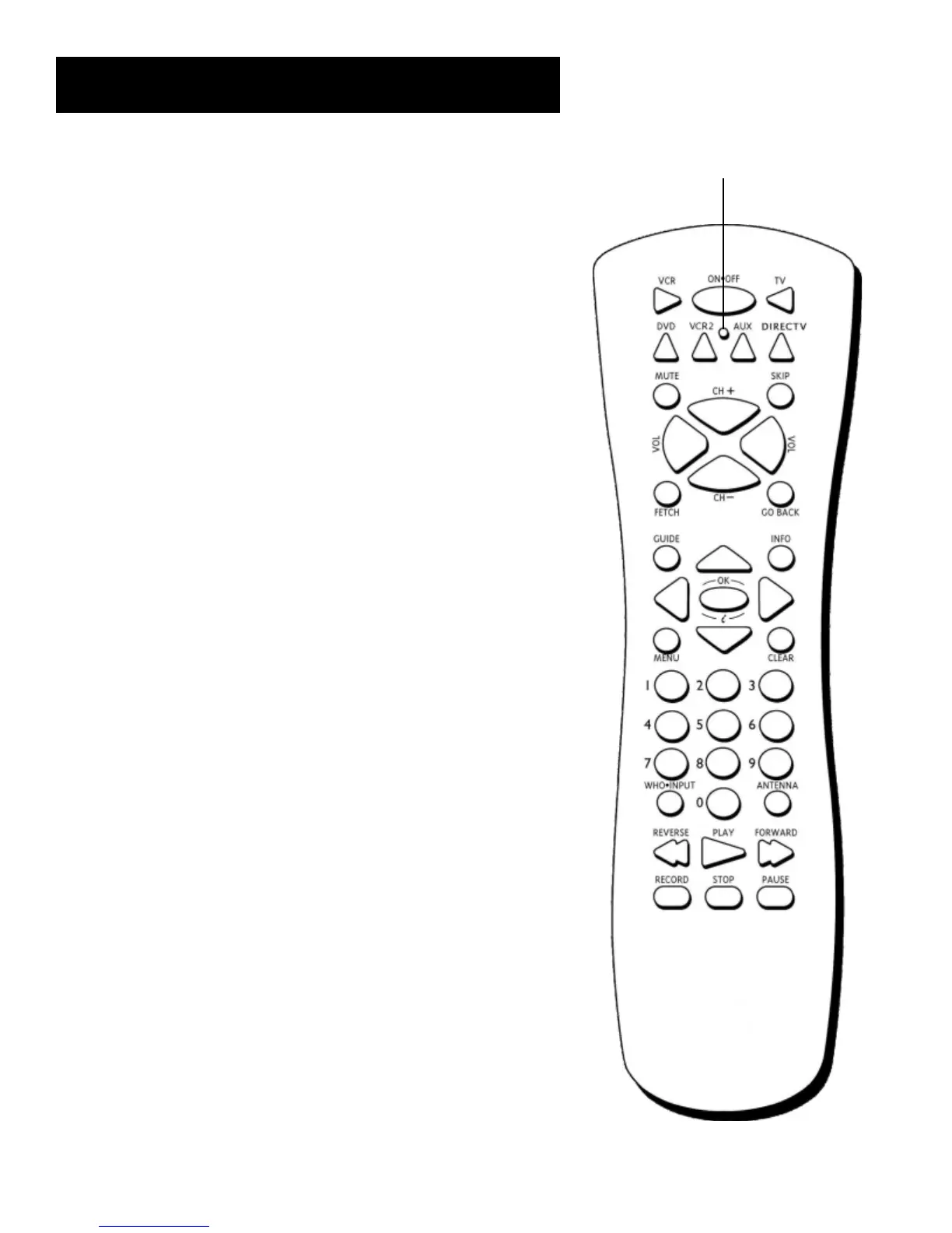 VCR When programmed, tells the remote to control the VCR.
