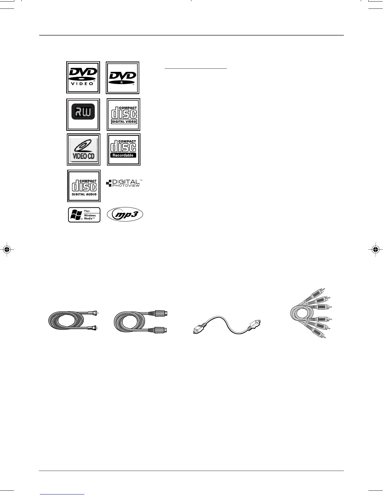 discs: DVDs, audio CDs, Video CDs, CDs with mp3 files, WMA