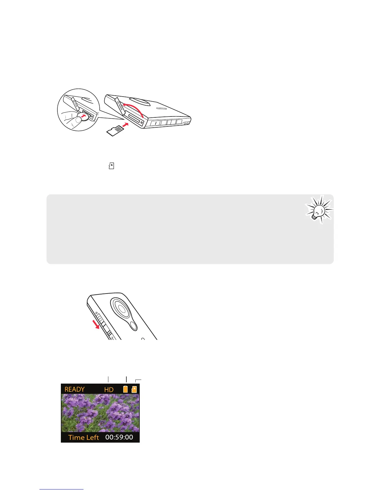 • Una vez que la tarjeta de memoria microSD esté insertada, las nuevas grabaciones serán guardadas
