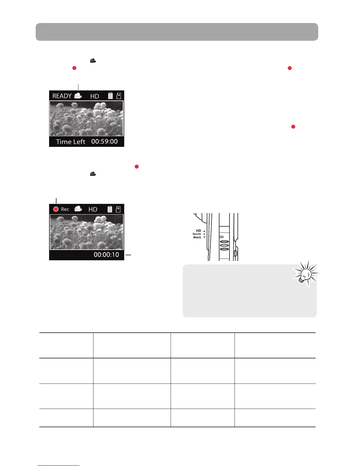 1. En mode Vidéo ( ), appuyez sur le bouton rouge
