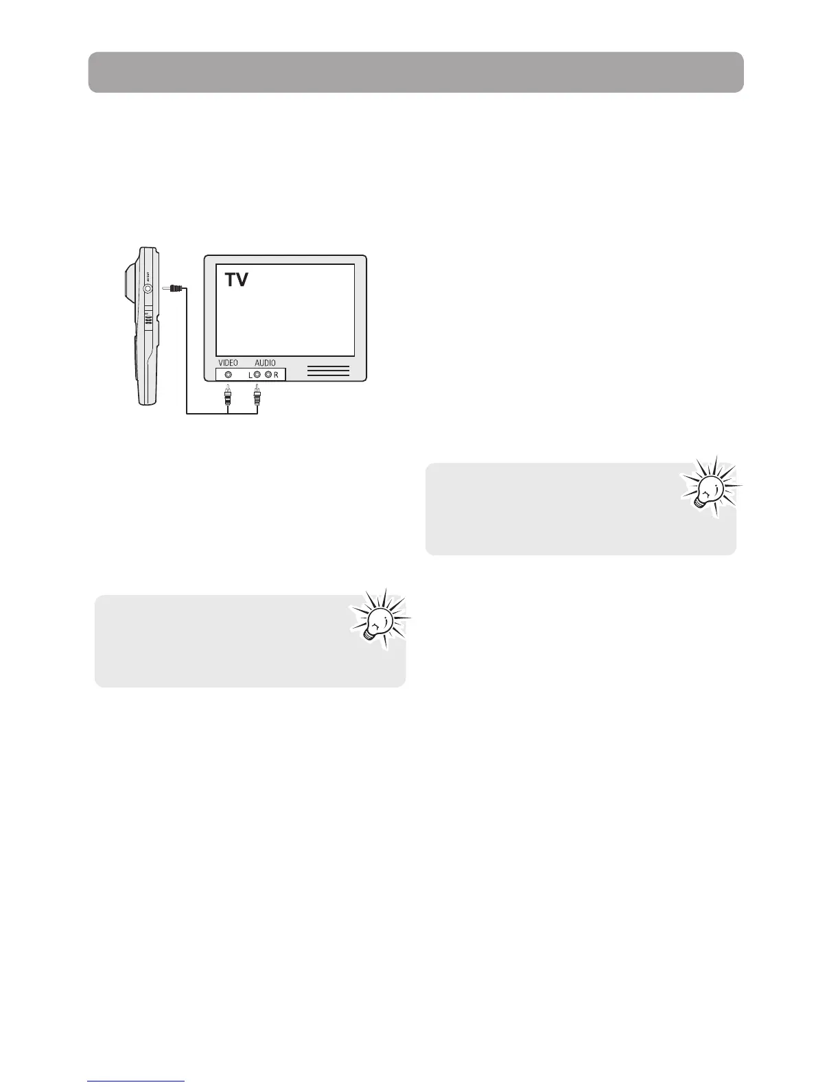 connector end into the camcorder (AV jack) and