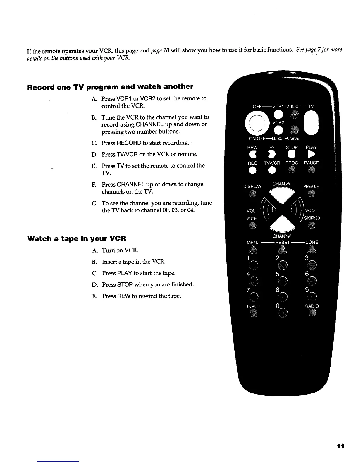 If the remote operates your VCR, this page and page 10 will show you how to use it for basic functions. See page 7for more
