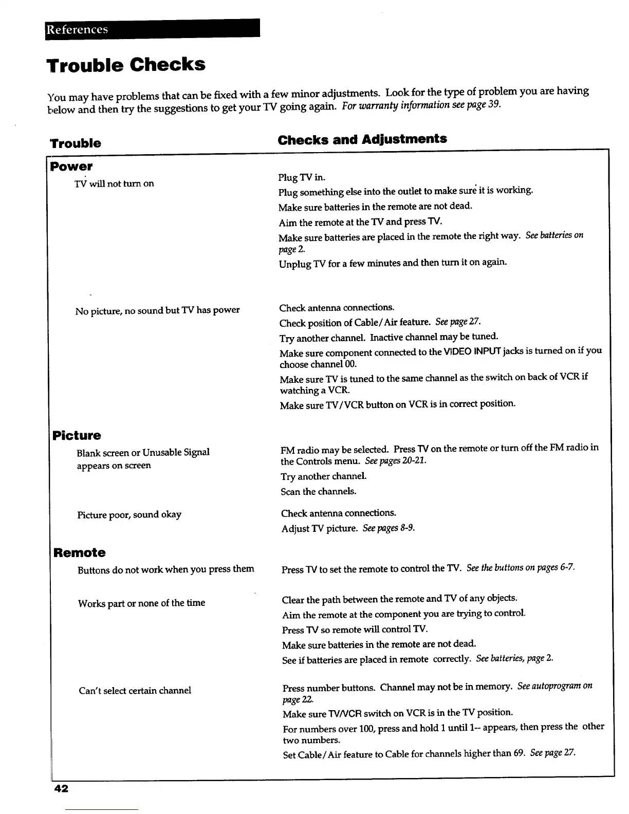 below and then try the suggestions to get your TV going again. For warranty information see page 39.