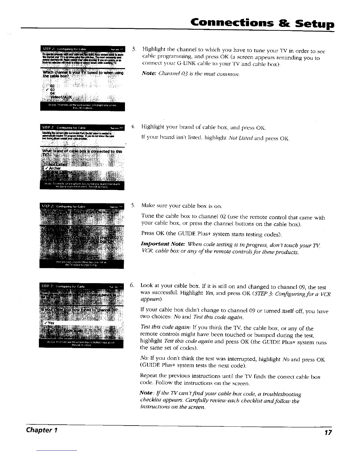 cable progranm_ing, and press OK (a screen appears reminding you to