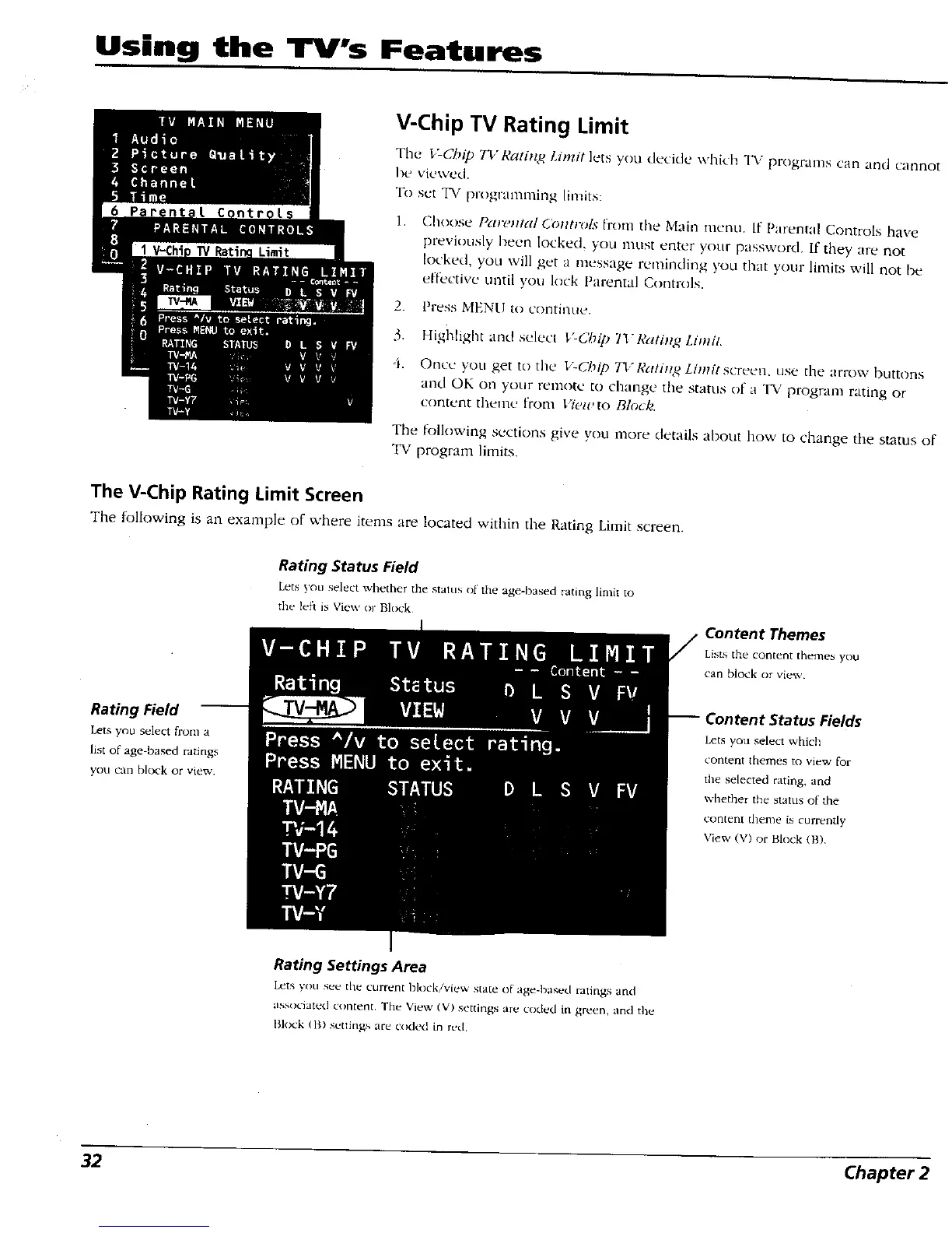 ,i. Once you get to the V-Chip Tl'Ralit/¢ Limit screen, tlse the arrow buttons