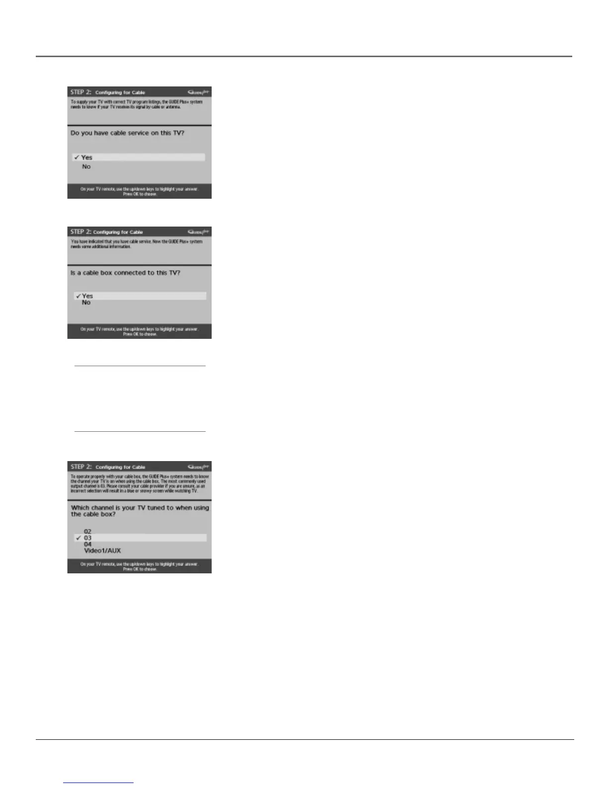 If your TV isn’t connected to cable, highlight No and press OK (STEP 3: