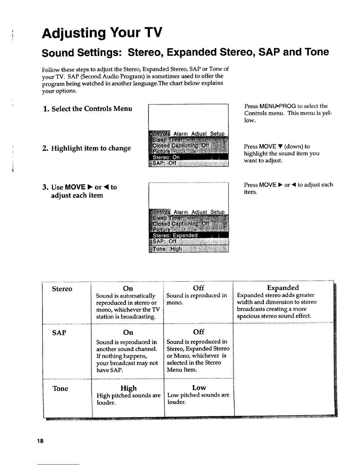 Sound Settings: Stereo, Expanded Stereo, SAP and Tone