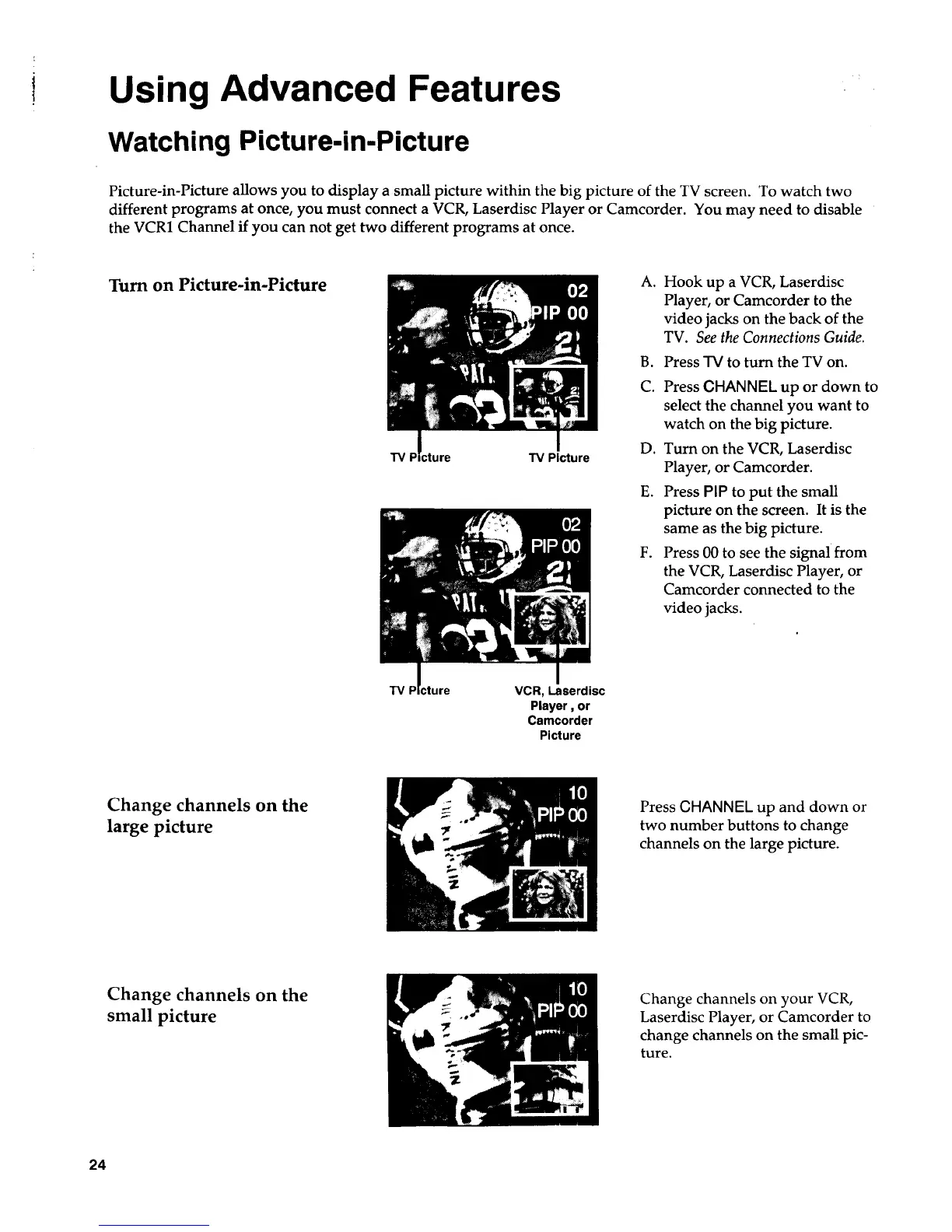 different programs at once, you must connect a VCR, Laserdisc Player or Camcorder. You may need to disable