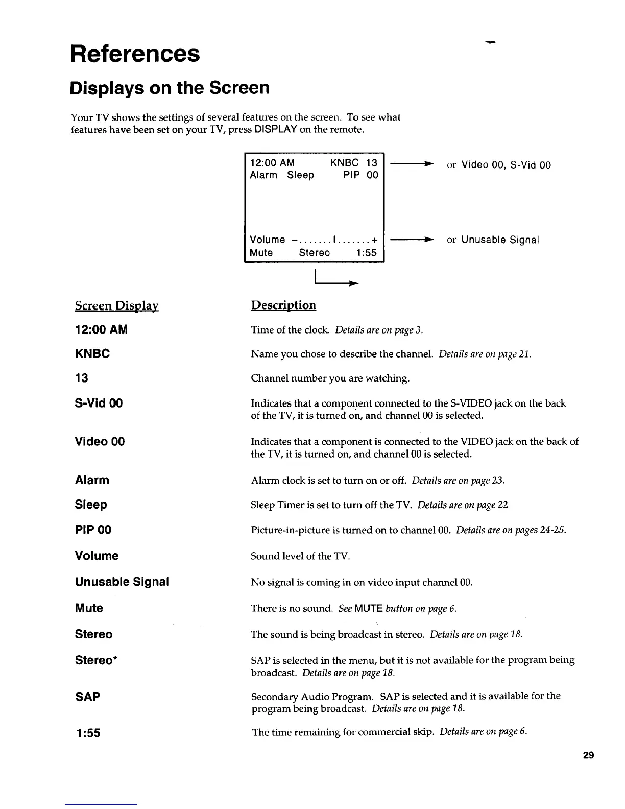 Picture-in-picture is turned on to channel 00. Details are on pages 24-25.